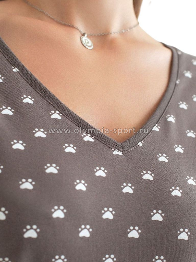 Футболка женская Vilatte D49.153 кофе-белый лапы