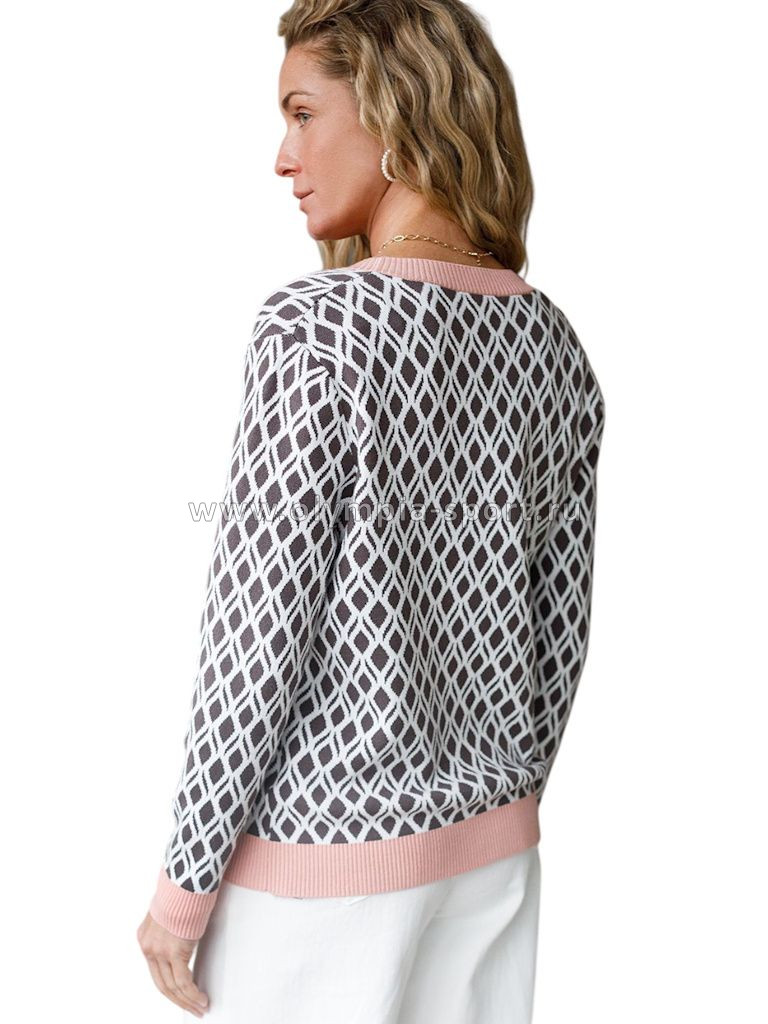 Кардиган женский Vilatte D31.152 кофейный-белый