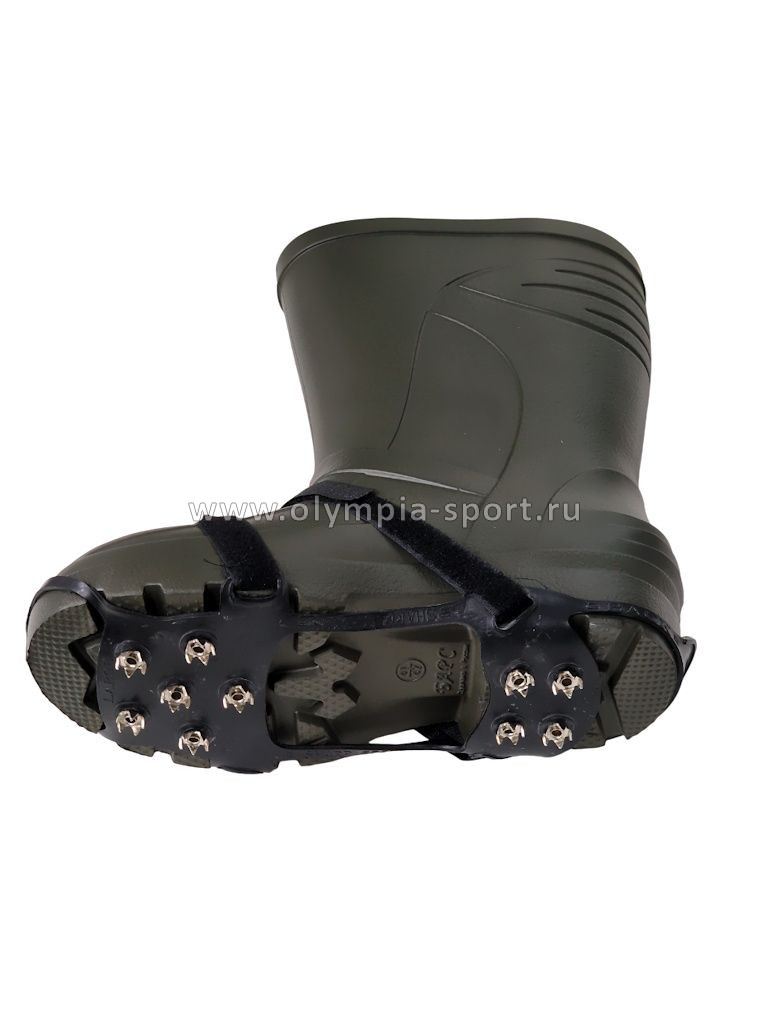 Антигололед имеет овальную форму, надевается на пятку и на носок.
